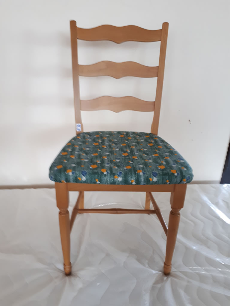 Dřevěná jídelní židle s čalouněným podsedákem.