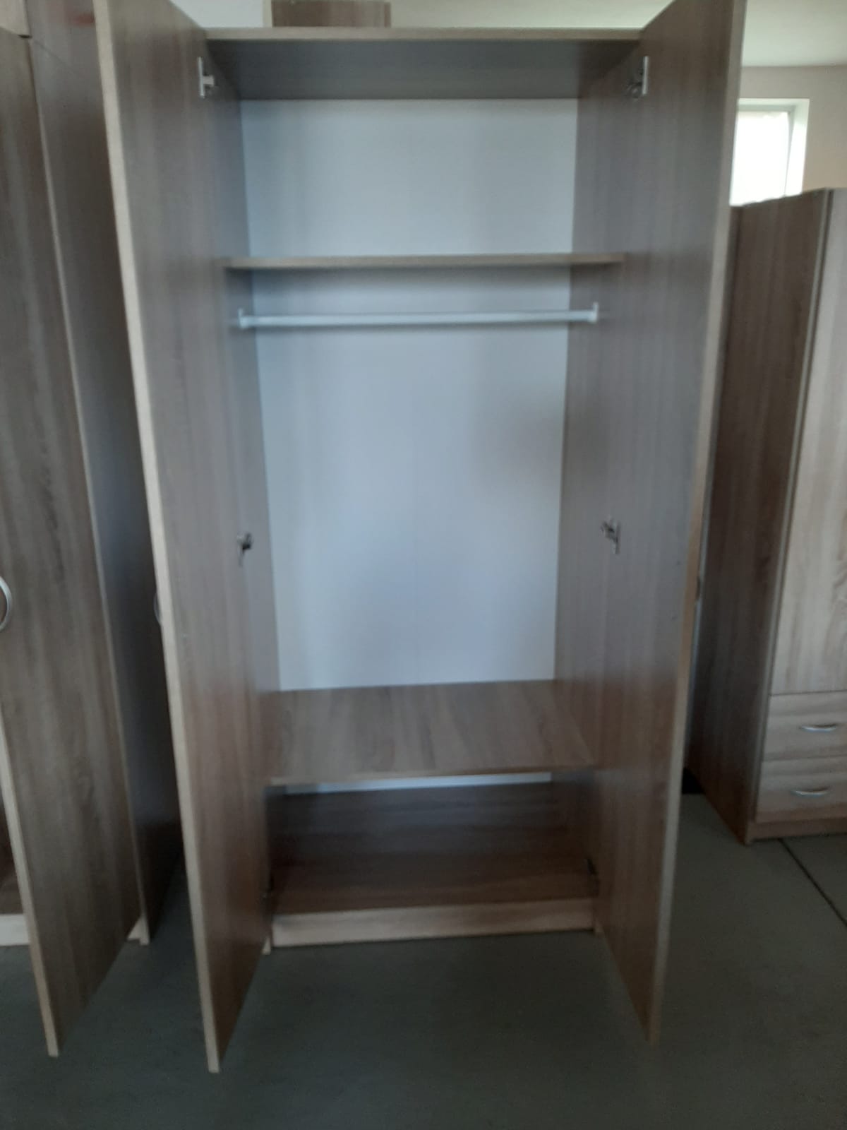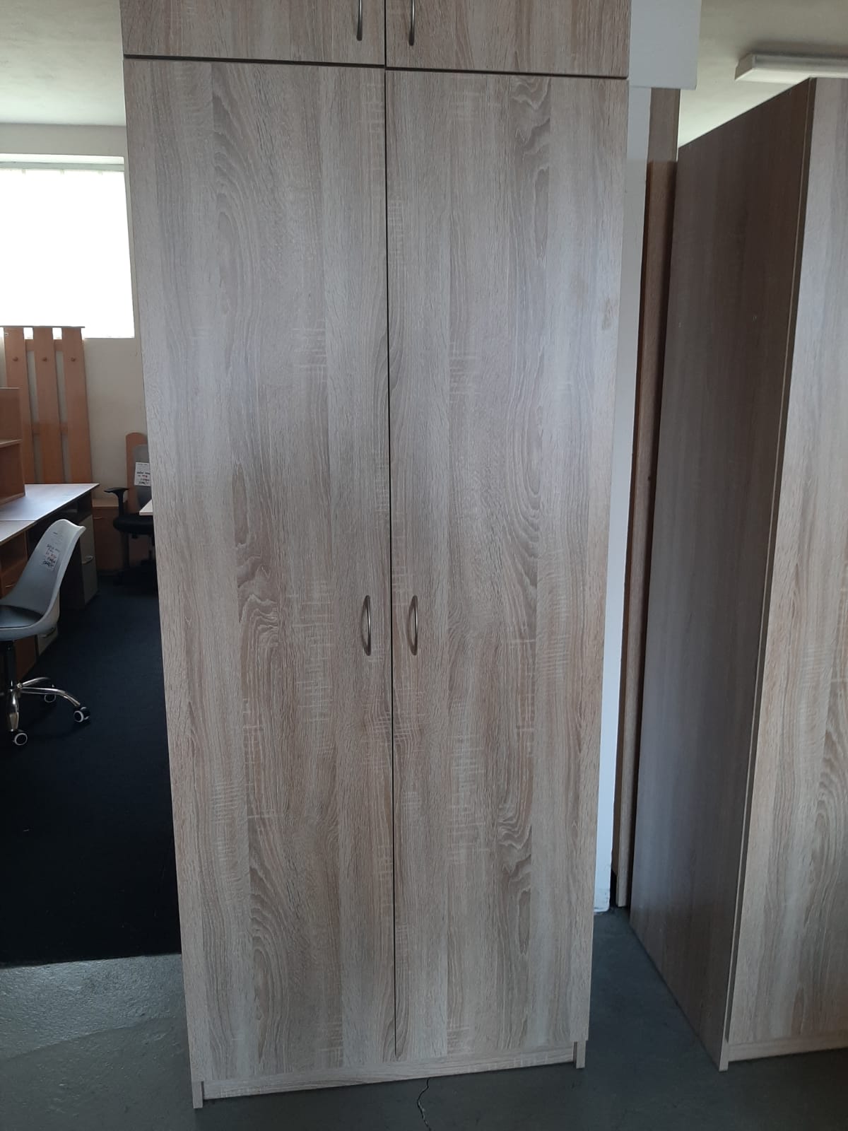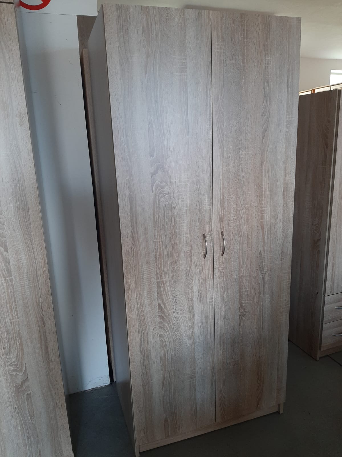 Dělená skříň s policemi a šatní tyčí. Dub sonoma. Rozměry v-š-h: 190 x 80 x 55 cm.